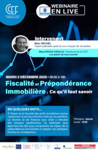 À l’heure où la fiscalité des actifs immobiliers évolue rapidement, il est essentiel d’en maîtriser les subtilités. La récente loi de finances pour 2025 a introduit des mesures significatives. Ce webinaire vous apportera les clés pour comprendre les enjeux de la prépondérance immobilière et adapter vos stratégies fiscales en conséquence.